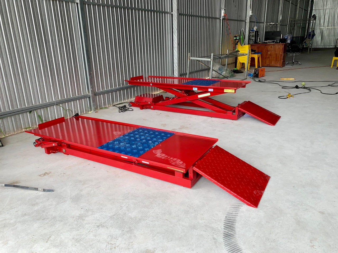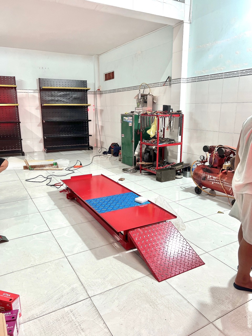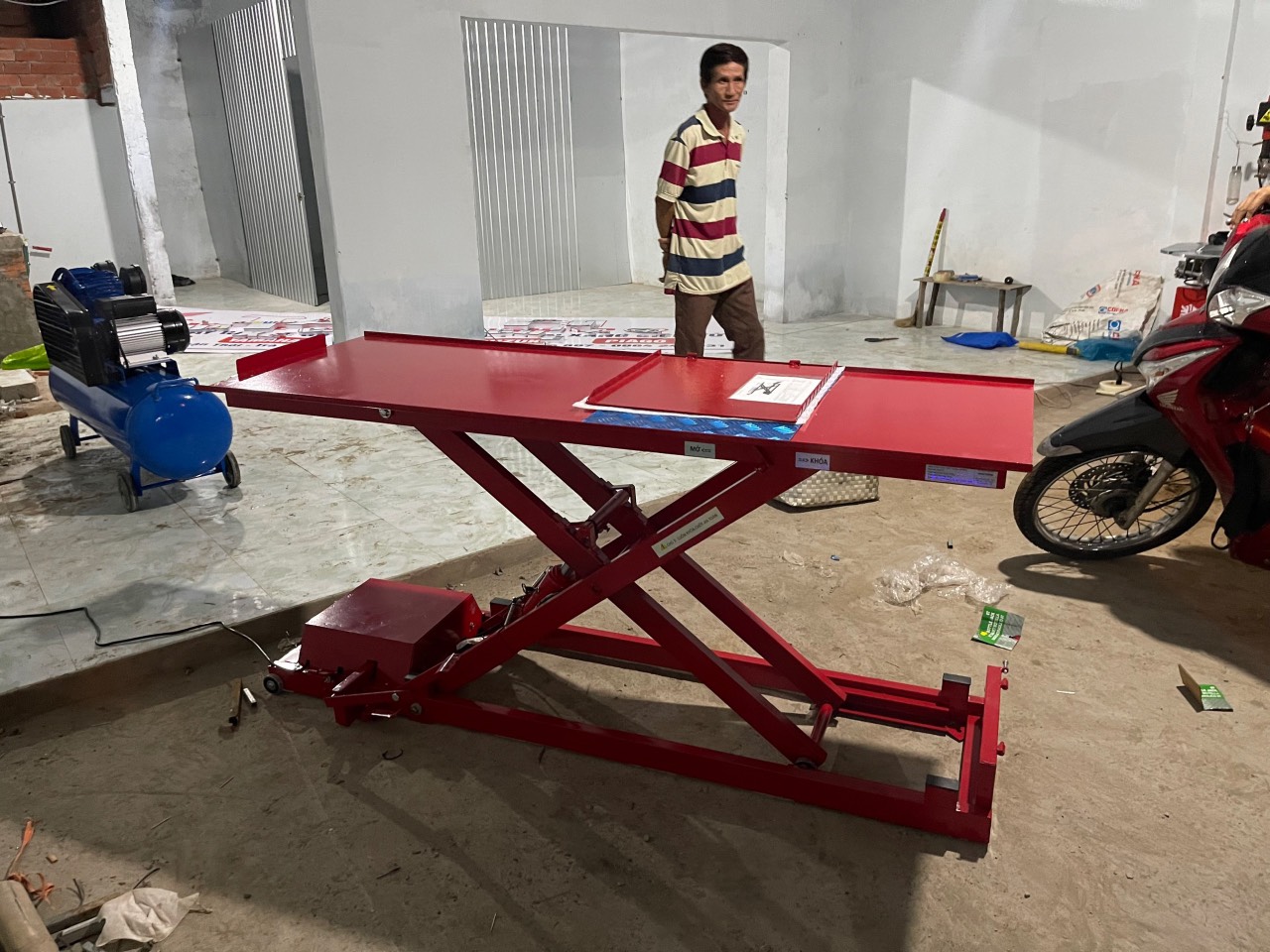 Mô tơ điện và bơm có thể đặt trong hoặc ngoài bàn nâng xe máy.
