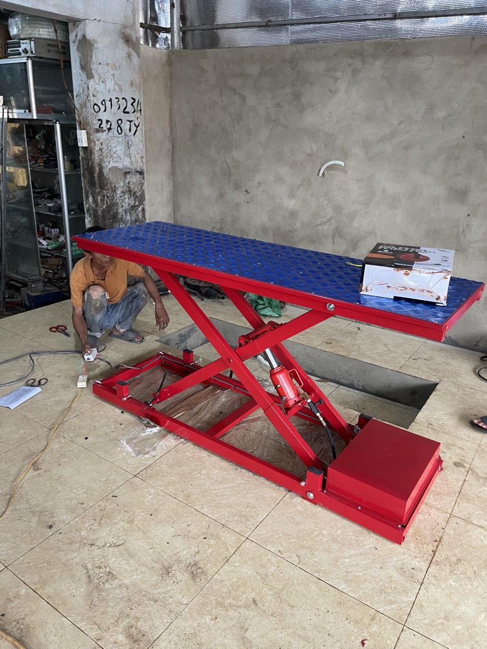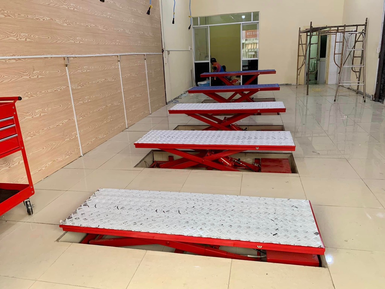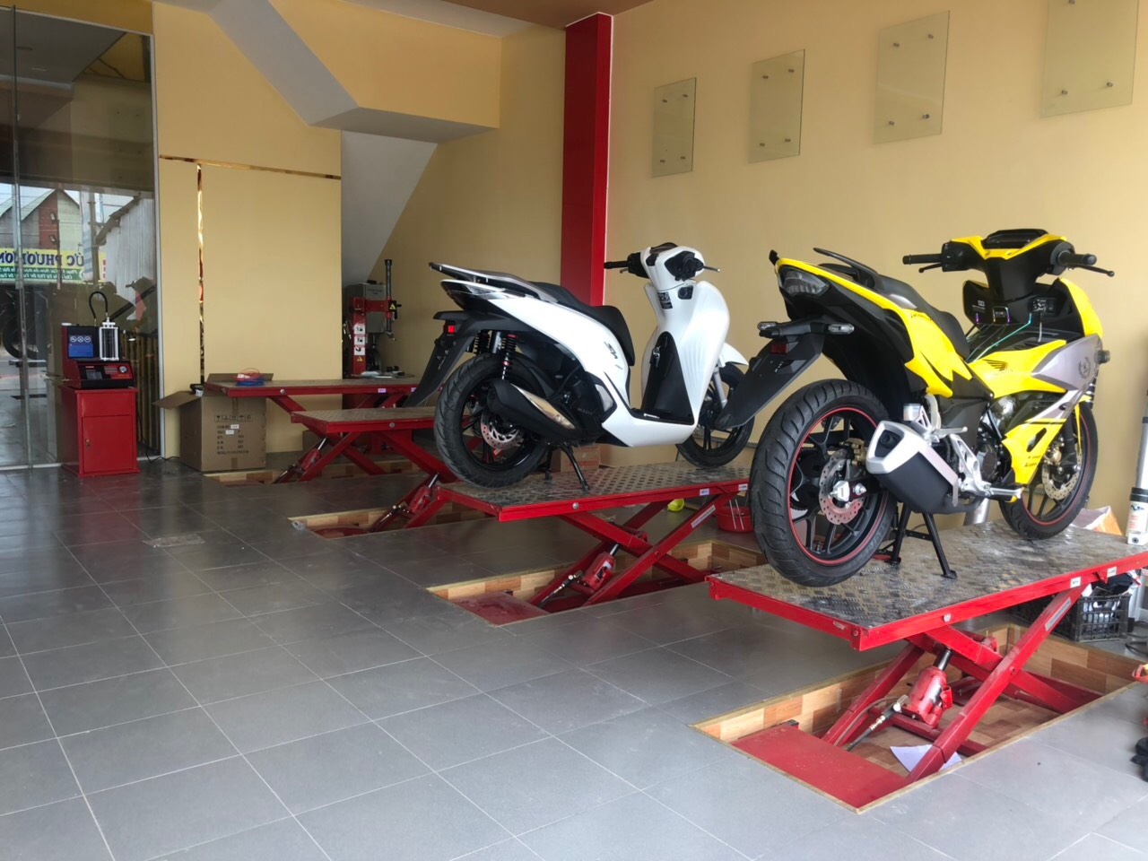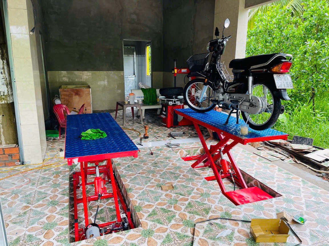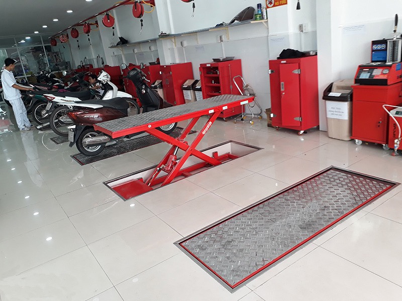 Bàn nâng xe máy âm nền mang đến tính thẩm mỹ cao cho xưởng
