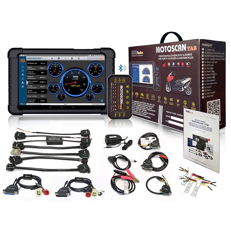 - MOTOSCAN TAB là một sản phẩm ấn tượng được nghiên cứu và chế tạo của DTDAuto Vietnam sử dụng để xác định lỗi, sửa chữa hệ thống điện và điện tử của hầu hết các loại xe máy thế hệ mới sử dụng hệ thống khởi động, phun xăng, đánh lửa, ABS, Smart key, ODO, ECU...ở thị trường Việt Nam và các nước trên thế giới.